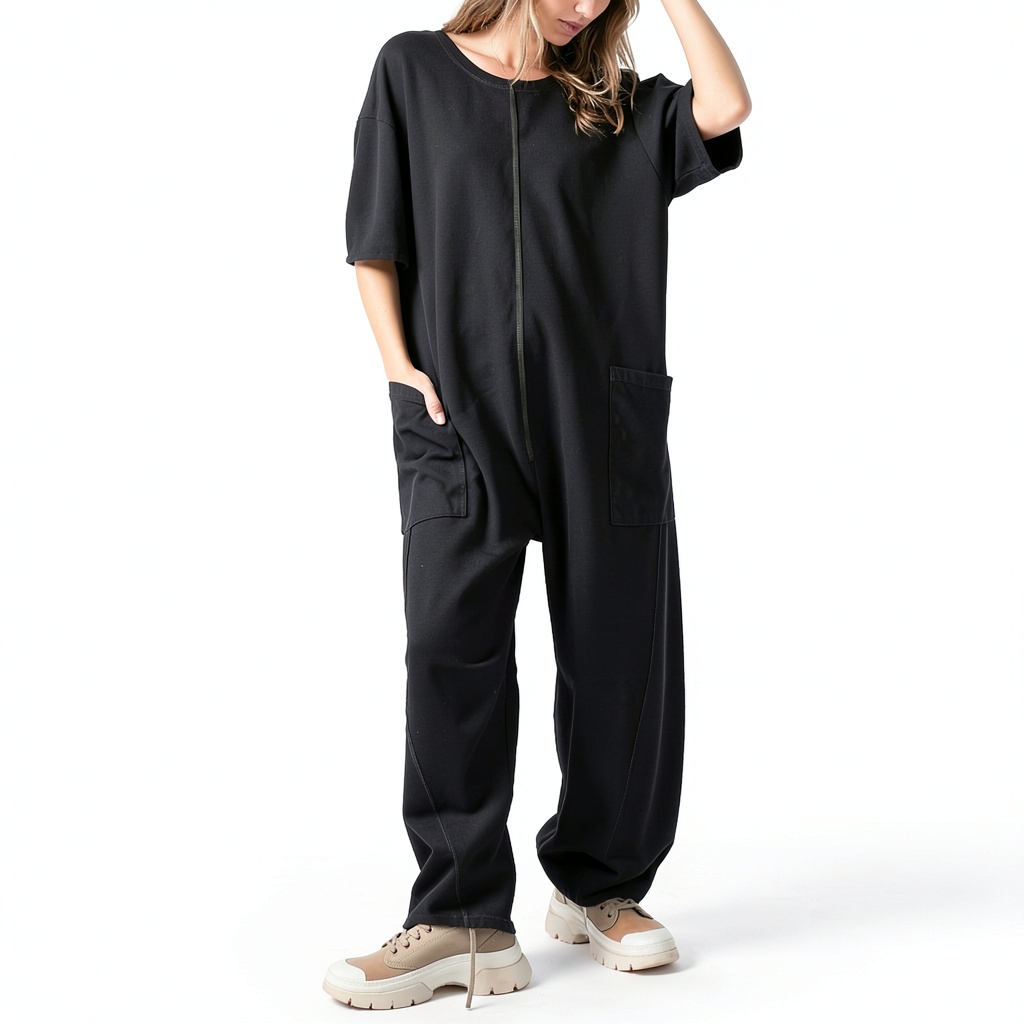 La combinaison femme chic Harlan est une salopette décontractée conçue pour offrir confort et style. Dotée de manches courtes, d’un col en V et d’un tissu élastique, elle assure une coupe ajustable et une liberté de mouvement. Disponible en plusieurs tailles (S à XXL) et couleurs comme rose, noir, blanc, rouge, gris et argent, cette combinaison intègre des poches pratiques pour un usage quotidien. Fabriquée avec soin, elle convient à diverses morphologies et occasions.